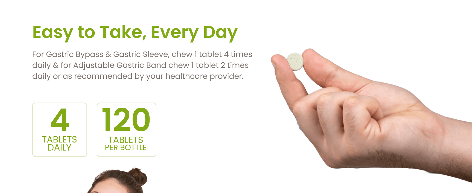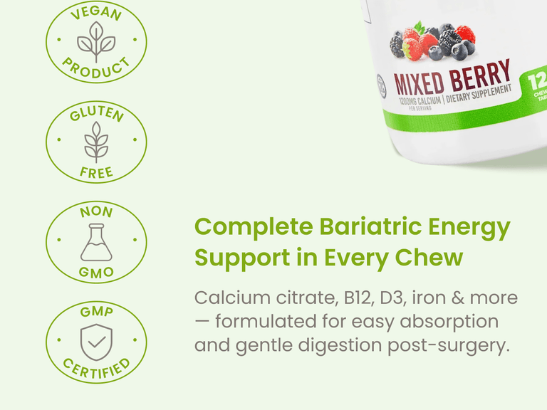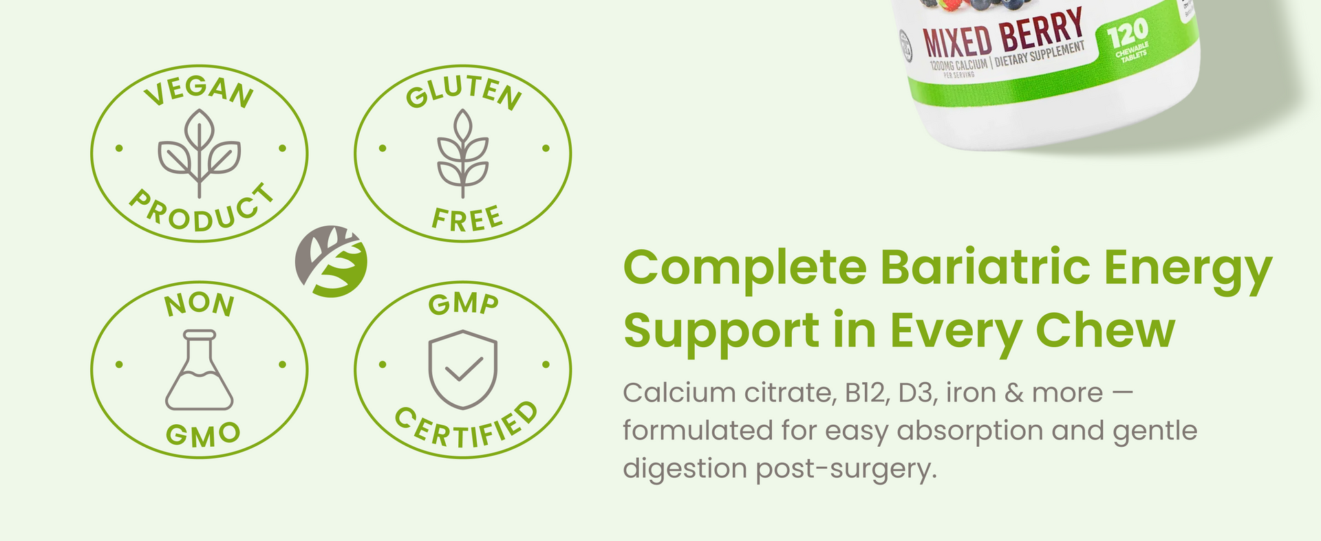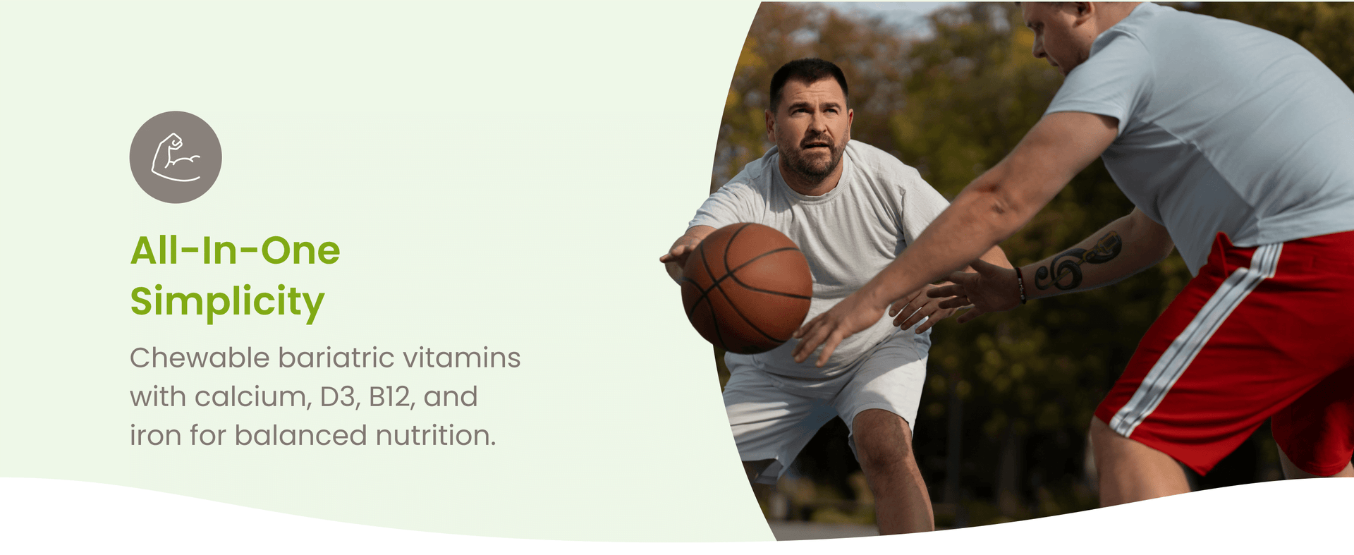 βAll-In-One Support for Life After Bariatric Surgery: Created especially for post-bariatric patients, BariSlimβs all-in-one chewable multivitamin with calcium citrate, vitamin D3, iron, and B12 delivers the complete daily nutrition your body needs after gastric bypass or sleeve surgery. Designed to simplify your supplement routine, it helps you stay consistent and confident in your recovery journey.