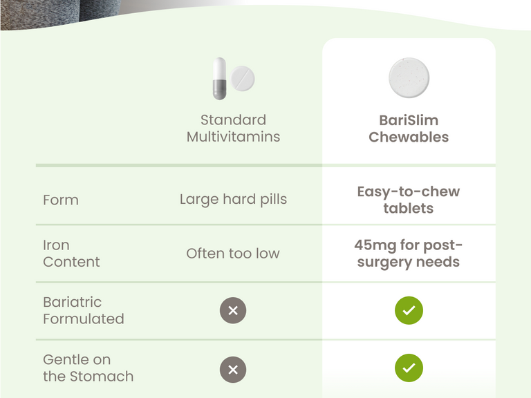 Bariatric multivitamins are designed to help support your new system after weight loss surgery.