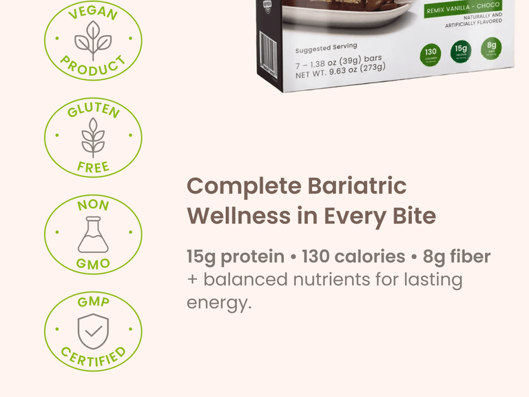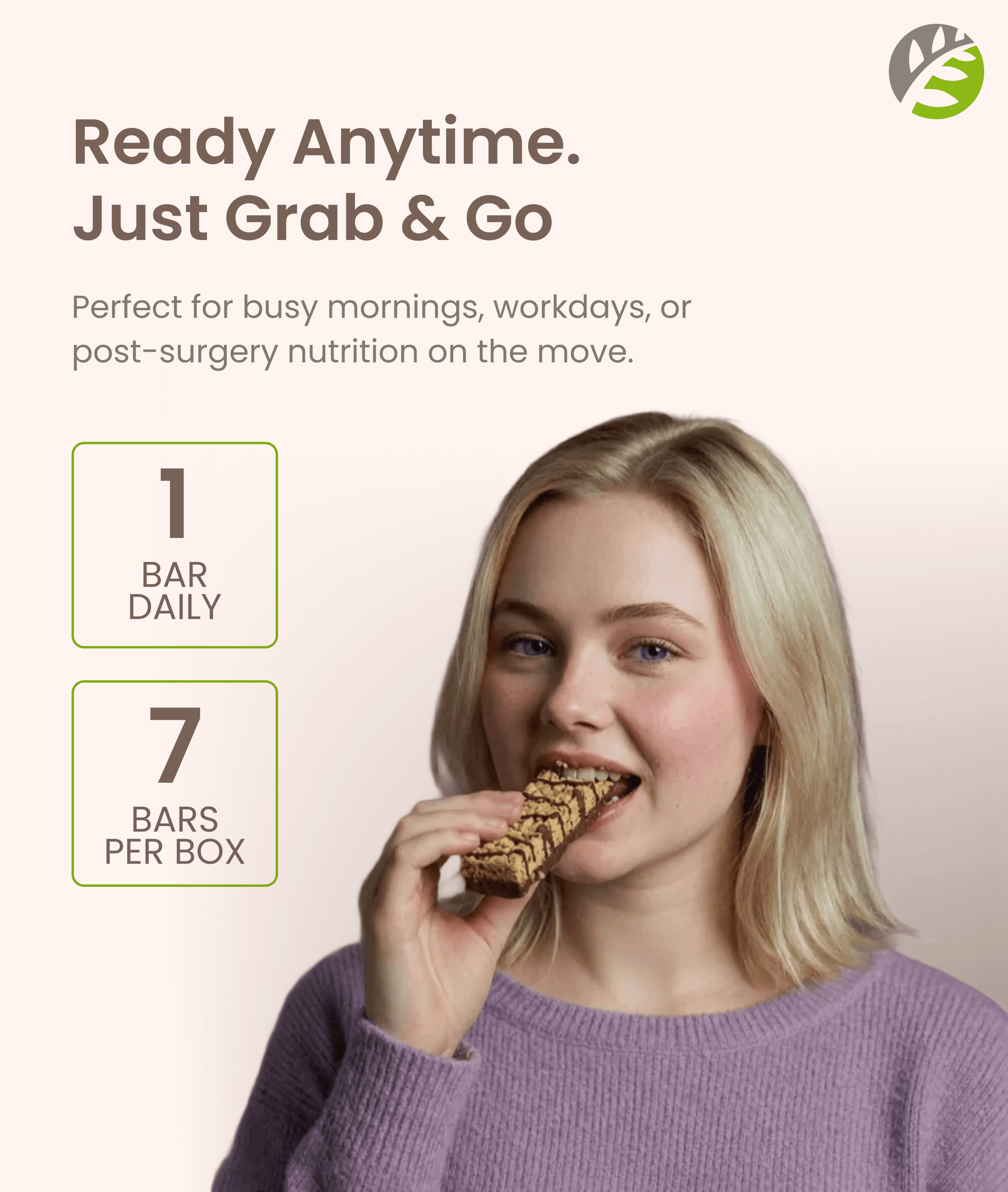 ✔Balanced Energy & Weight Maintenance: Each bar delivers a balanced blend of high-quality protein, carbs, and fiber to provide lasting energy and support effective weight management. Formulated for bariatric patients and active individuals, this nutrient-dense snack helps prevent sugar crashes, promotes fullness, and fuels your body for daily stamina and focus.