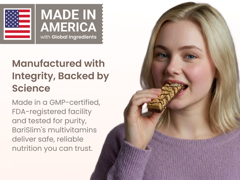 ✔Commitment to Health and Quality: Each BariSlim bar is crafted under strict GMP-certified, USA-based quality standards and third-party tested for purity and consistency. With clean ingredients, balanced nutrition, and satisfying taste, BariSlim delivers the perfect combination of quality and convenience. Don’t miss the opportunity. Simply click “ADD TO CART” today and take a step toward smarter snacking and stronger wellness.