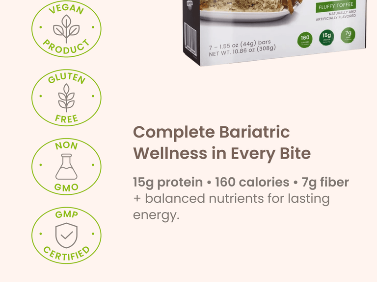 ✔Balanced Energy & Weight Maintenance: Each bar delivers a balanced blend of high-quality protein, carbs, and fiber to provide lasting energy and support effective weight management. Formulated for bariatric patients and active individuals, this nutrient-dense snack helps prevent sugar crashes, promotes fullness, and fuels your body for daily stamina and focus.